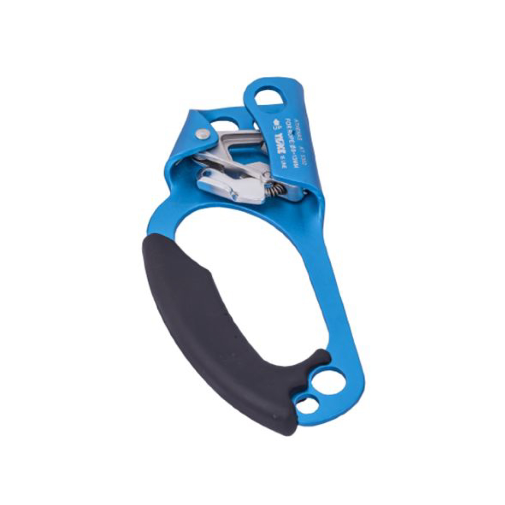 Ascensor blocante para progressão em cordas de 8 a 13mm, mão esquerda, produzido em chapa de alumínio de alta resistência com tratamento anodizado, é dotado de sistema de engate rápido e empunhadura ergonômica com apoio de mão emborrachado para melhor ergonomia, possui espaço para fixação de mosquetão para fixação do estribo, sistema de bloqueio com mordente antiderrapante.