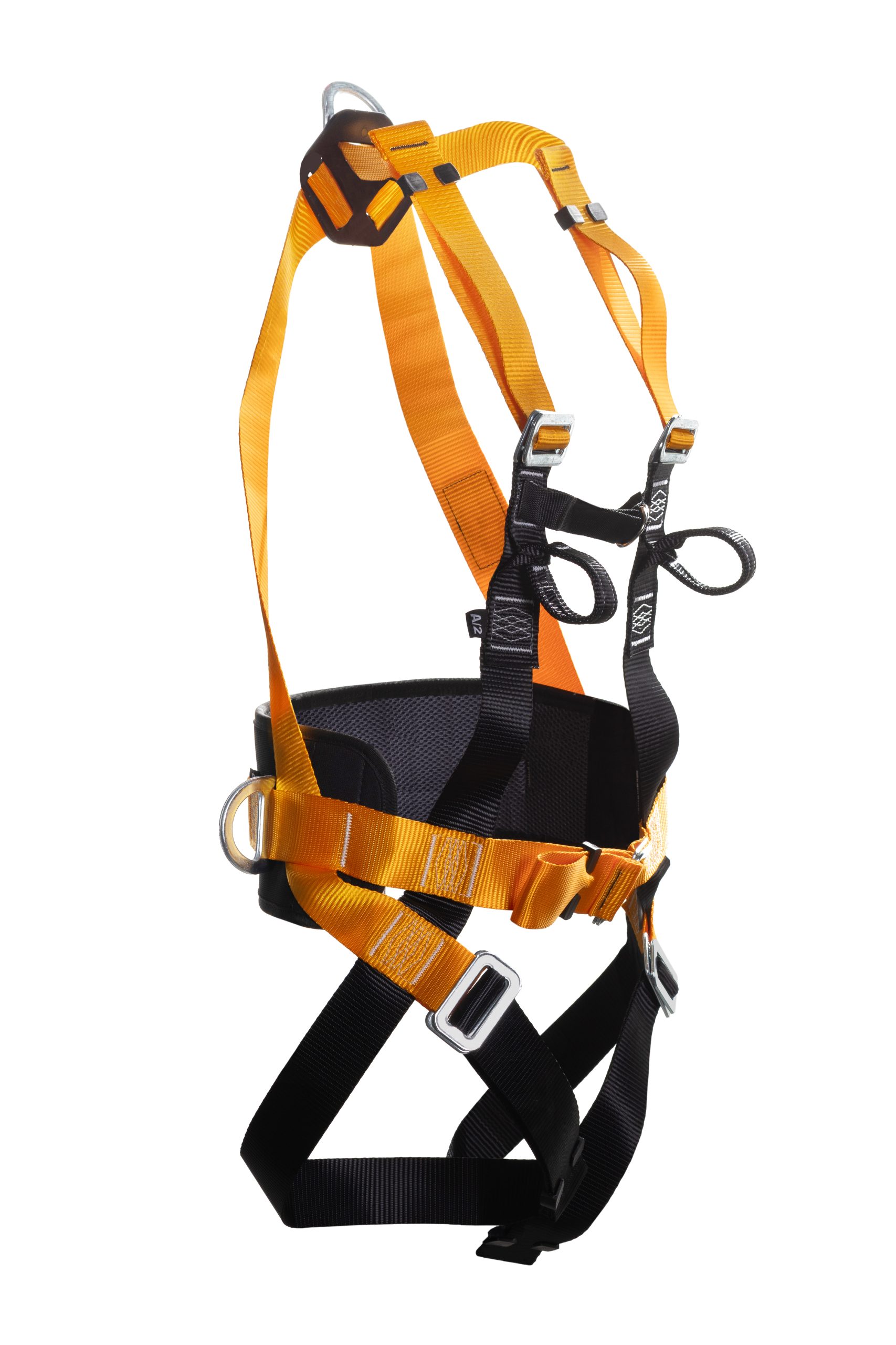 - Conexão dorsal, uma argola “D” inclinada, em aço – Utilizada para retenção de queda (A)